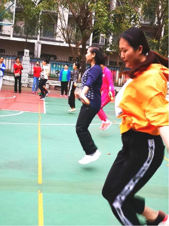 跳绳运动简单易行,尤其对女职工来说,既锻炼身体,又愉悦心情,同时还提高自身协调能力和灵活性。