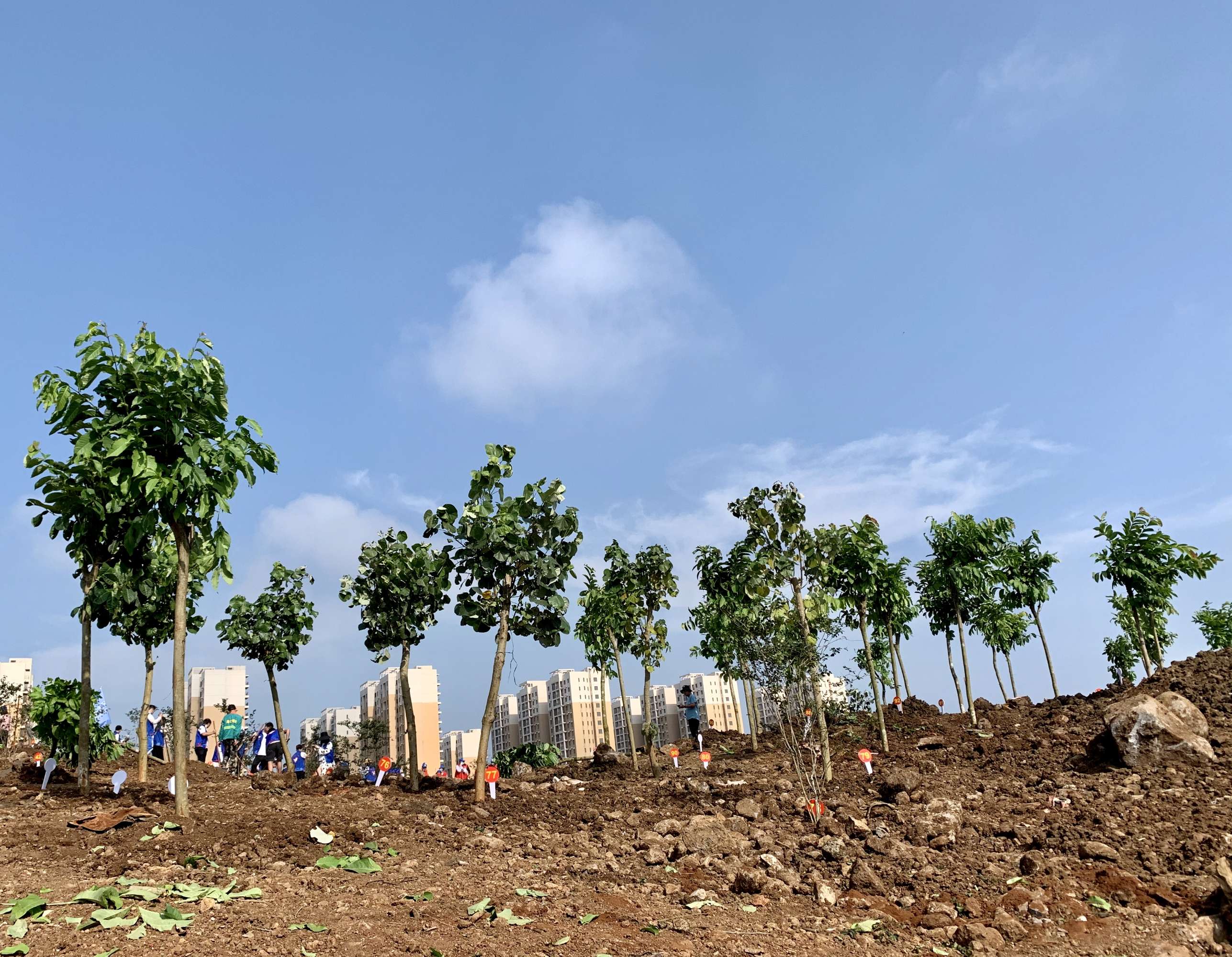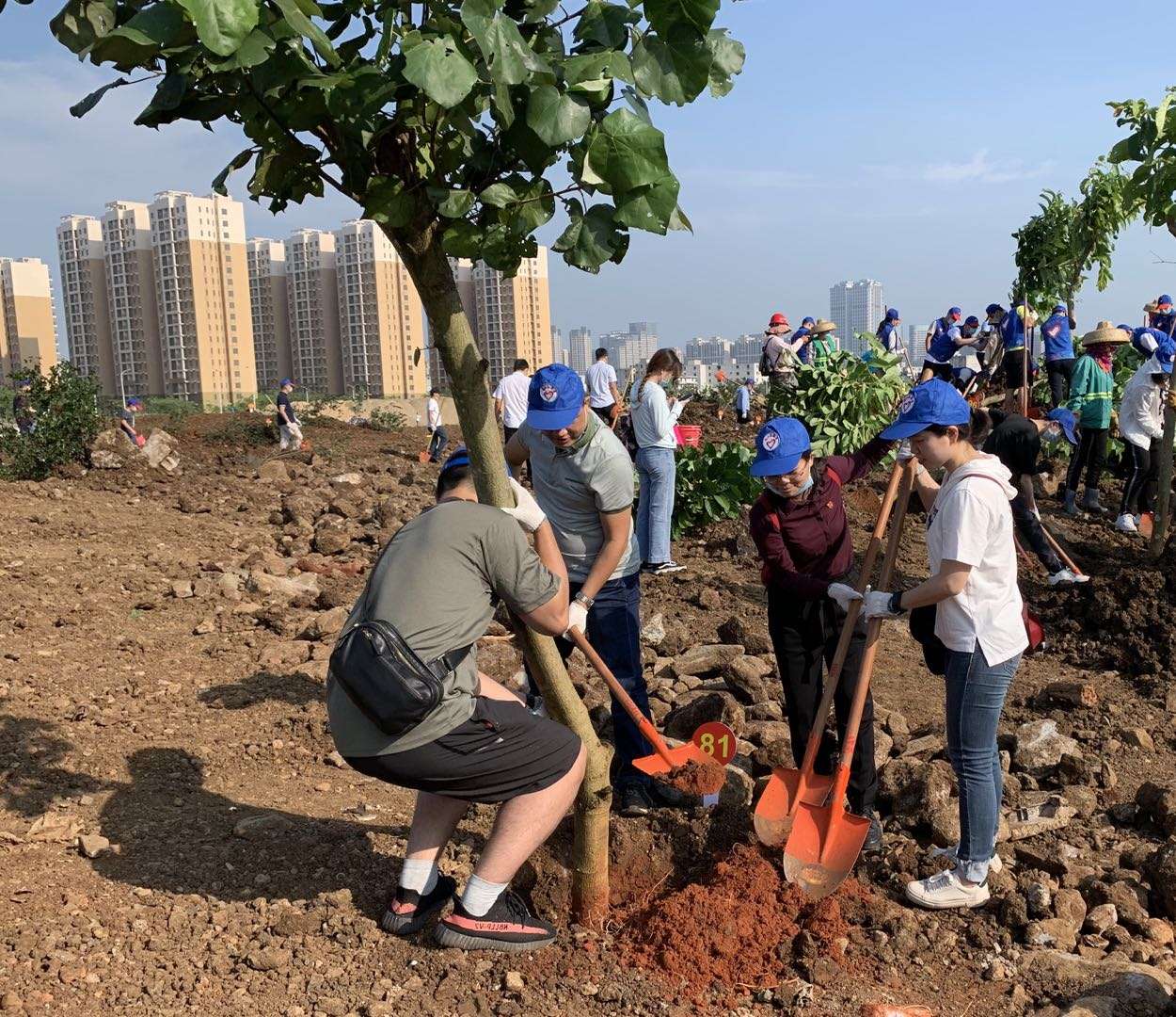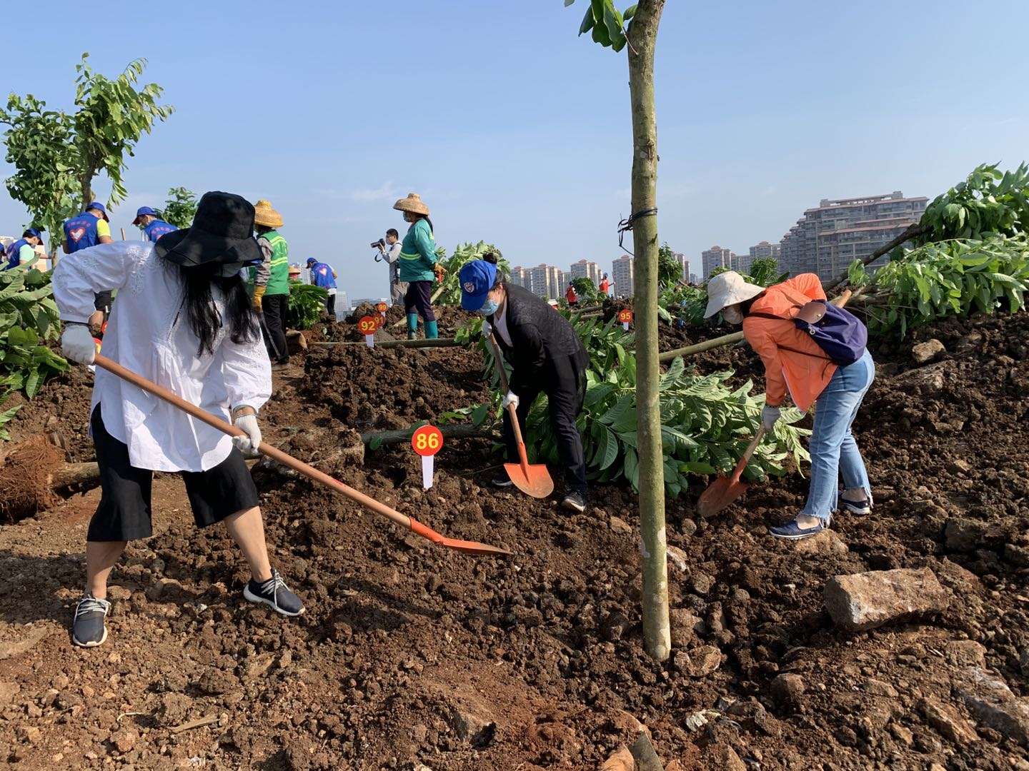 一株株树苗扎根沃土,一整片“共青林”茁壮成长,为海口国际湿地城市又增添一抹绿。