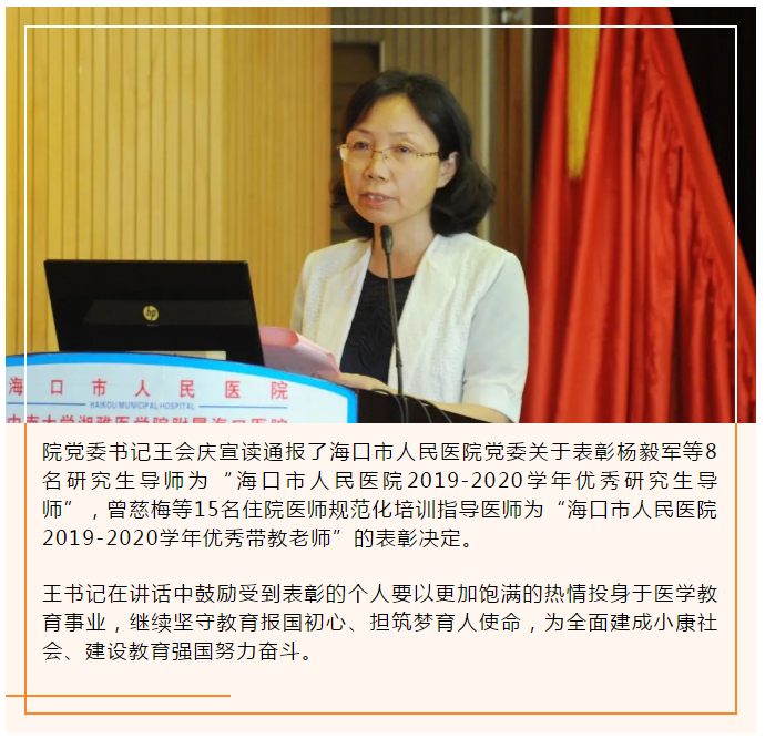 9月10日下午,偷拍在线 举办庆祝第36个教师节暨2020年优秀教师表彰大会,展现偷拍在线 医学教师立足医疗教学岗位,“立德树人,奋进担当”,守教育报国初心、担筑梦育人使命。表彰大会由副院长袁秀洪主持,医院党政班子领导、各科室主任、教研室主任、护士长、专业基地主任、轮训科室主任、教学主任、教学秘书及在读研究生、住院医师规范化培训对象代表等200多人参加表彰大会。