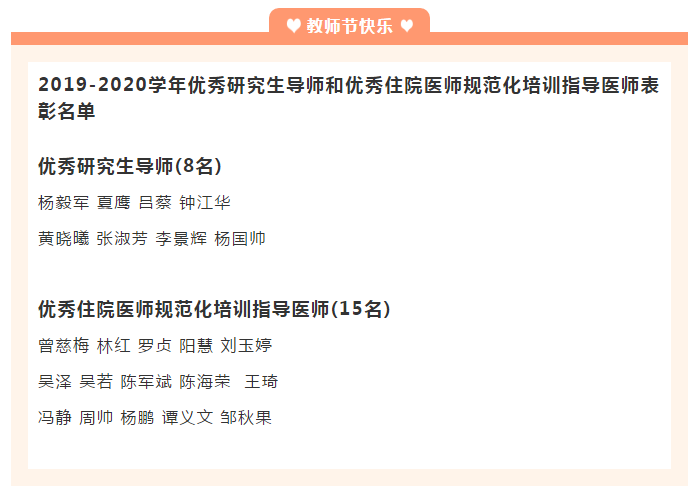 2020年第36个教师节的主题是“立德树人奋进担当,教育脱贫托举希望”,全国的医学教师,尤其是在临床一线的医学教师,在疫情防控期间,已经将这个主题诠释得淋漓尽致。教师们不仅在一线为打赢新冠肺炎阻击战奋勇战斗,同时,在线上线下进行多形式的网络授课,疫情防控与教学工作两不误,彰显了医者和师者的风范。因此,我们要以庆祝教师节为契机,持续巩固“奋进之笔”的成效,展现广大教师立足教育教学岗位,助力打赢新冠肺炎防控阻击战,教育脱贫攻坚战的精神风貌,大力弘扬尊师重教传统,构建新湘雅尊师重教的文化,持续提升偷拍在线