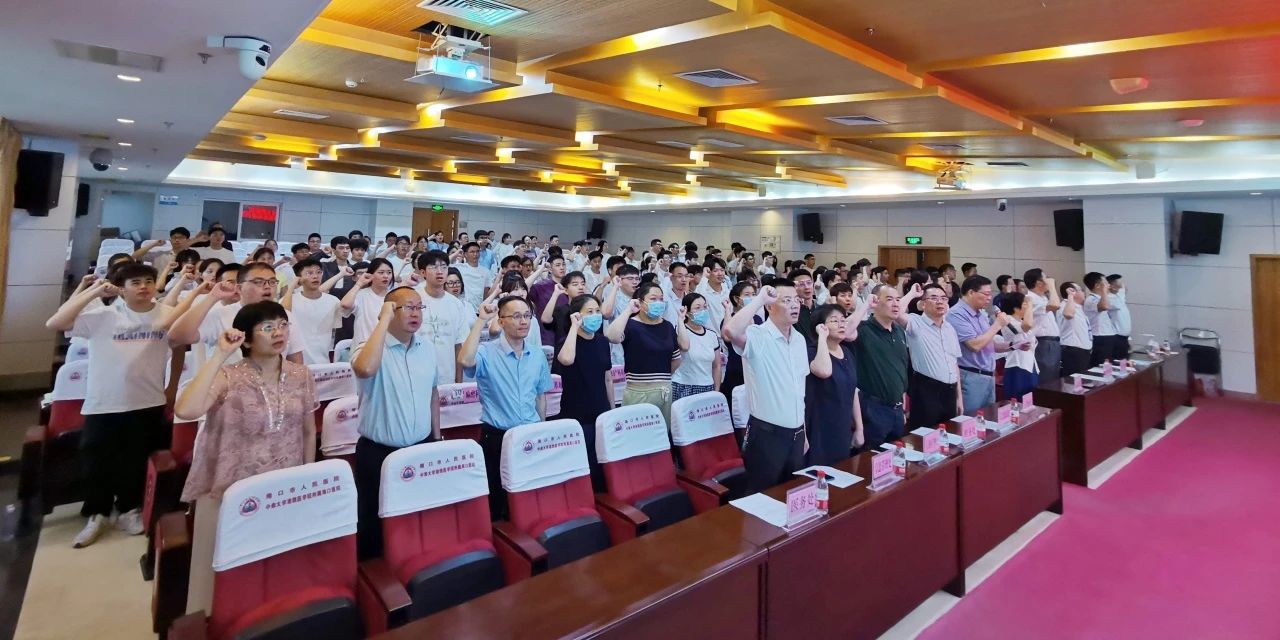 典礼最后,在副院长王加充带领下,全体新学员庄严宣誓《中国医师宣言》。
