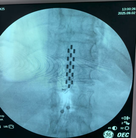 陈伟明主任团队为患者成功实施了脊髓电刺激电极植入术。次日启动设备,疗效立竿见影——患者右下肢疼痛显著缓解,左下肢麻木感消失,更令人欣喜的是,患者双下肢血运同步改善,皮肤温度明显回升。
