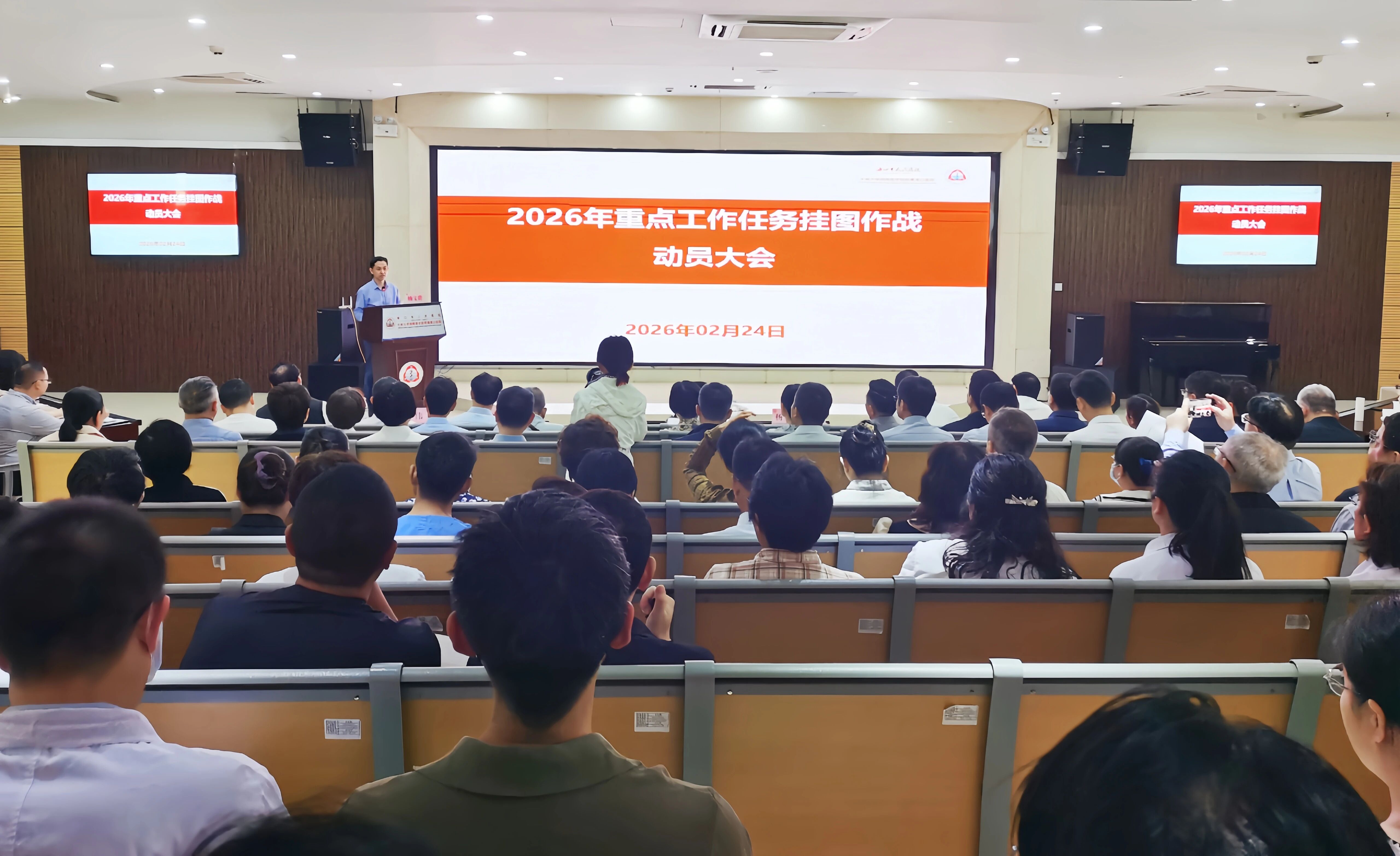2月24日(正月初八)上午,偷拍在线 召开2026年重点工作任务挂图作战动员大会,旨在全面部署新一年度重点工作,动员全院上下进一步统一思想、明确目标、压实责任,以“开局即决战、起步即冲刺”的奋斗姿态,确保年度各项重点工作落地见效,全力推动医院高质量发展。医院领导班子成员、全体中层干部、全体博士及正高职称人员参加会议。会议由副院长王加充主持。