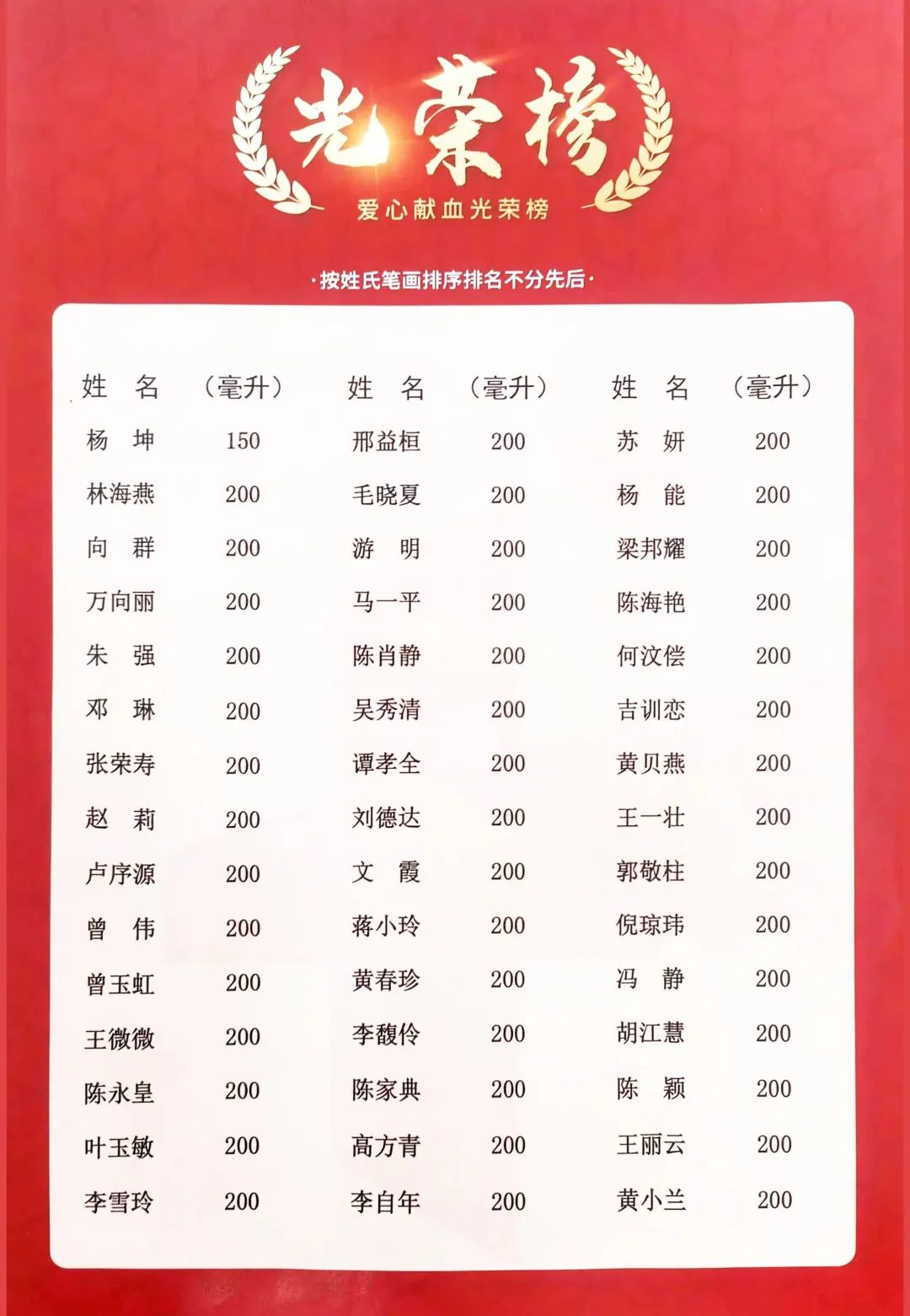 2023年02月07日,贵单位积极组织无偿献血活动,178名同志踊跃献血,共捐献血液48450ML毫升。在此,我们谨代表输血患者及家属向贵单位和爱心献血的同志们致以最崇高的敬意和衷心的感谢!感谢你们用殷红的热血让濒临危险的 生命得到及时救治!感谢你们用无私奉献的行动传播文明风尚,为社会谱写了最和谐的乐章!为弘扬献血救人无私奉献精神,表彰先进典型,建议贵单位将感谢状和光荣榜予以张榜公布。