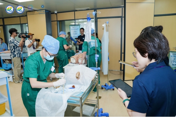备赛的前二十天,王琦老师带着我们扎进了医院的临床技能培训中心。她常说:“临床上能做到九十分才能在比赛做到六十分。”为了纠正规范操作的小毛病,我在模拟人上一遍遍复现:从消毒范围到打麻药,从穿刺点的定位到抽液时的手感反馈,连每一个进针的深度都要调整到位。患者可能不会给你第二次机会,所以规范不是刻板,是对生命的敬畏。这是“精益求精”背后的重量。
